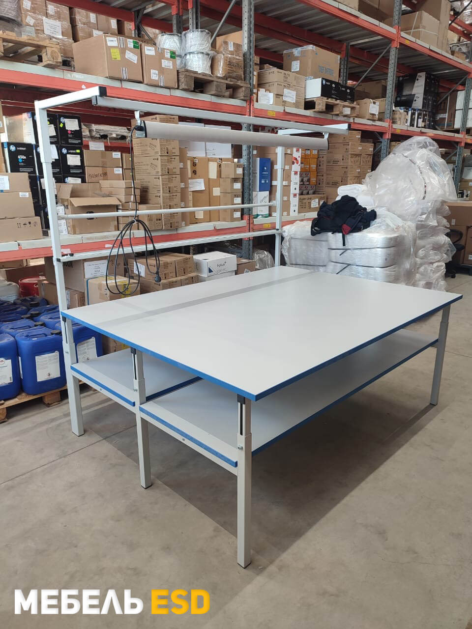 Модульная конструкция дает возможность оснастить раскройный стол дополнительным оборудованием: подвесными тумбами, перфорированными панелями, электропанелями, держателями рулонов, планкой для крепления лотков, освещением рабочей поверхности, угловым столом, ящиком для мелких принадлежностей, крючками для инструментов и другим дополнительным оборудованием и оснащением.