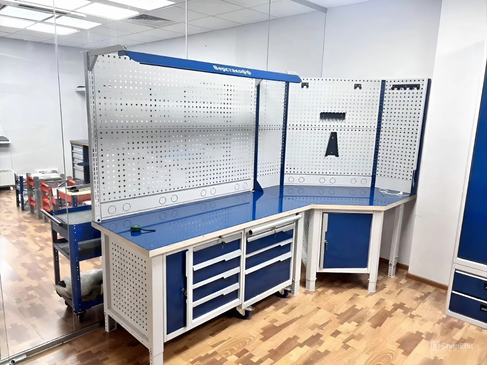 Рама верстака выполнена из холоднокатаной стали толщиной 2мм, модули - из стали 0,8мм.