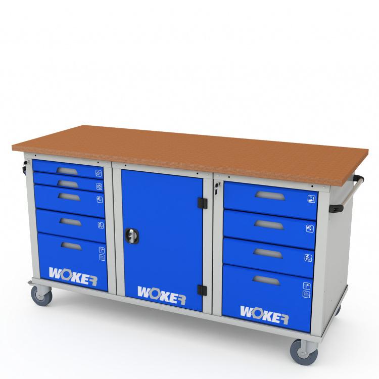 • Платформа мобильного верстака установлена на комплект большегрузных колес d=160 мм из полиуретана