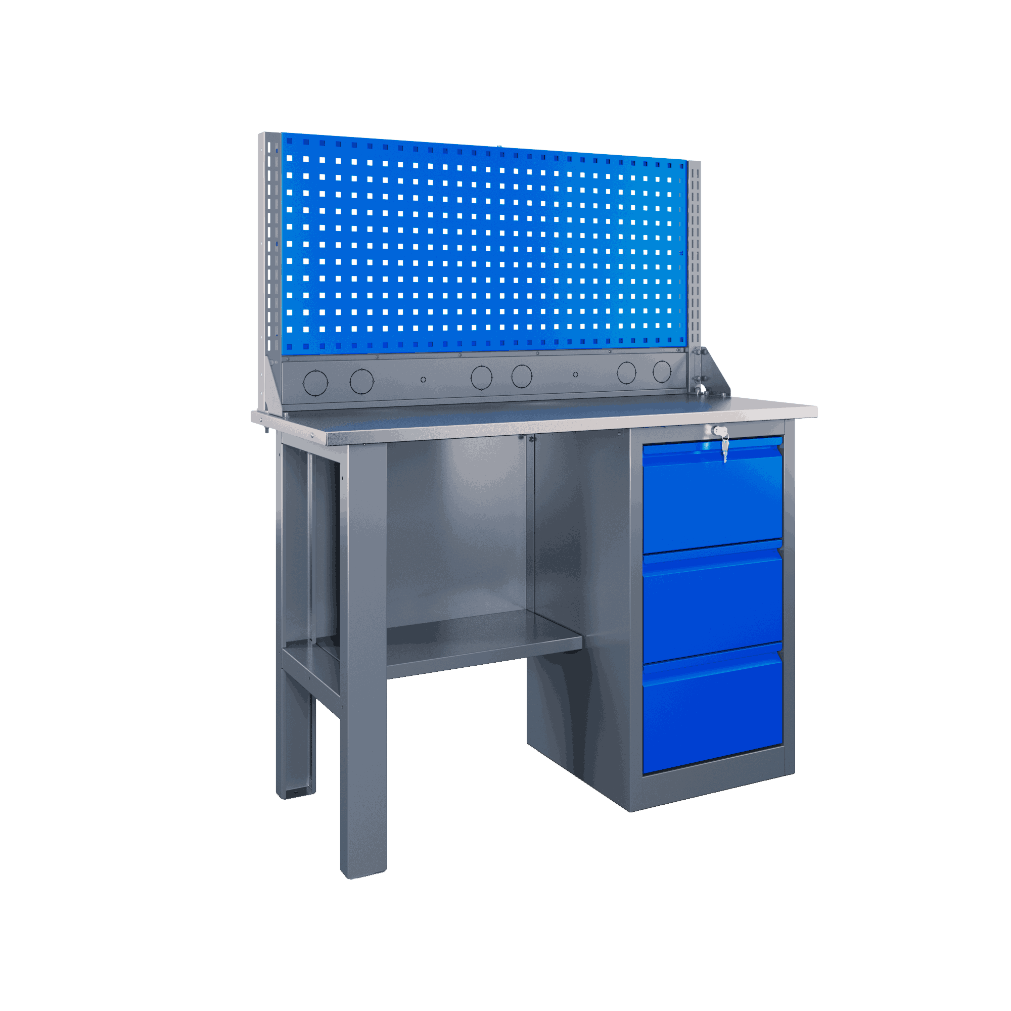 Самые компактные верстаки с глубиной столешницы 500 мм. Благодаря небольшой глубине, такие верстаки легко размещаются в ограниченных пространствах, например, в гаражах, мастерских и тд. Несмотря на компактные размеры, верстаки могут быть оснащены полками, ящиками и держателями для инструментов, что помогает поддерживать порядок и быстро находить нужные предметы.