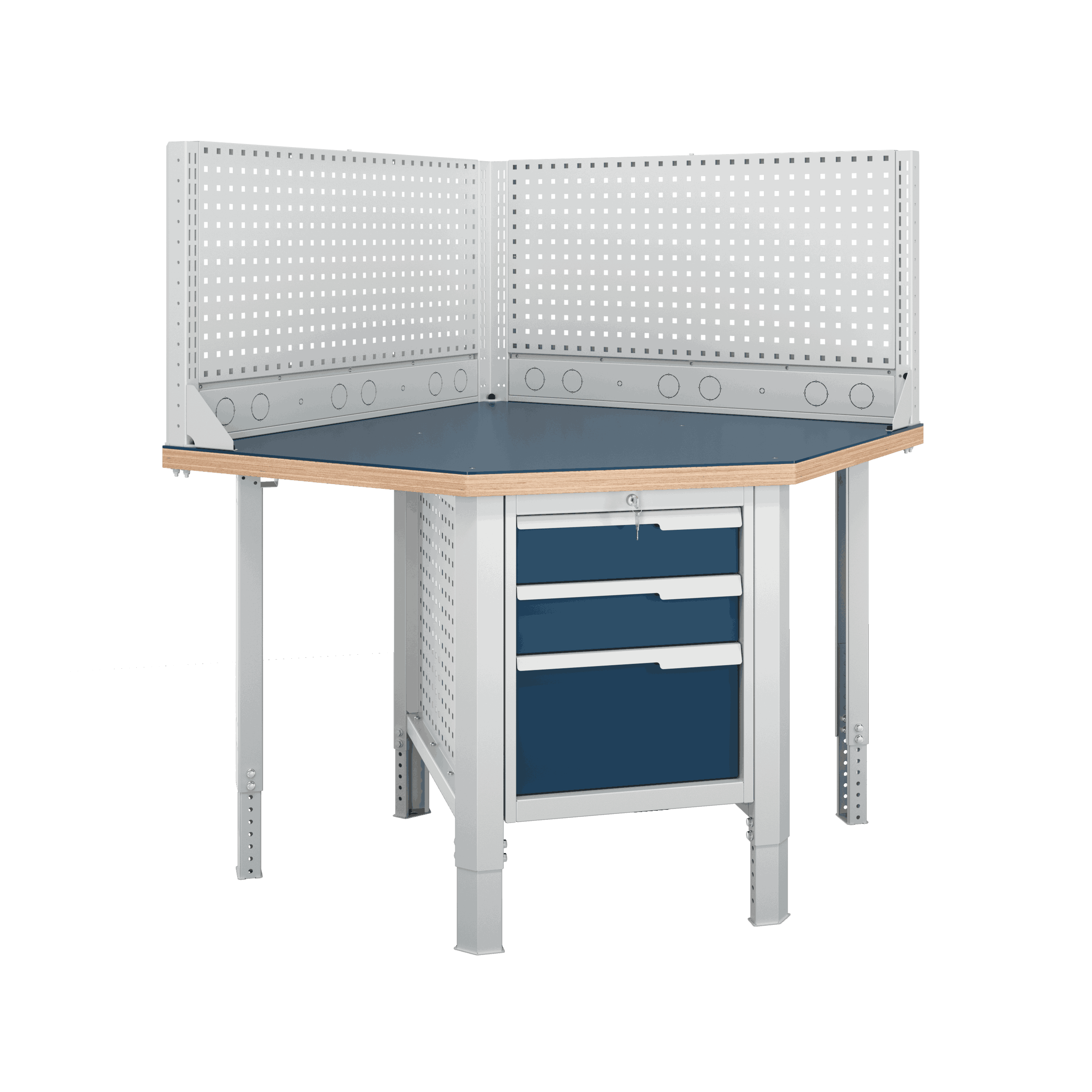 Блок стыковки углового верстака серии Constructor U5 разработан для обеспечения максимальной гибкости и надежности, учитывая конструктивные характеристики рабочего помещения.