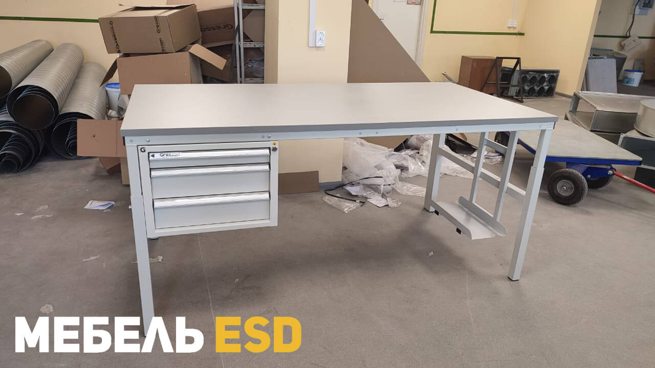 - знак ESD (Electrostatic sensitive device), обозначающий работу с материалами чувствительными к электростатическому разряду. В антистатическом исполнении (ESD) на тыльной стороне корпуса тумбы имеется заземляющий провод с клеммой.